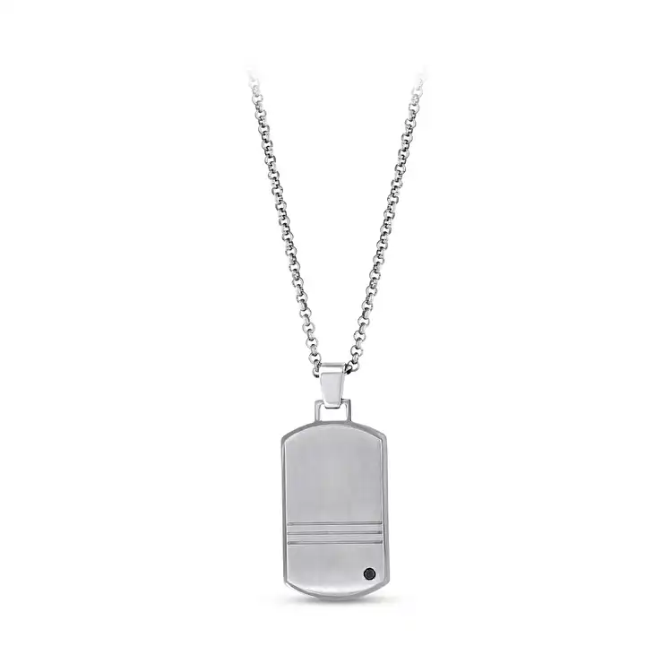 قلادة ستيل رجالية مرصعة بالألماس 0.03 قيراط