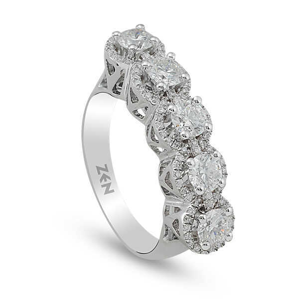 خاتم خمس أحجار مرصع بالألماس 0,73 قراط