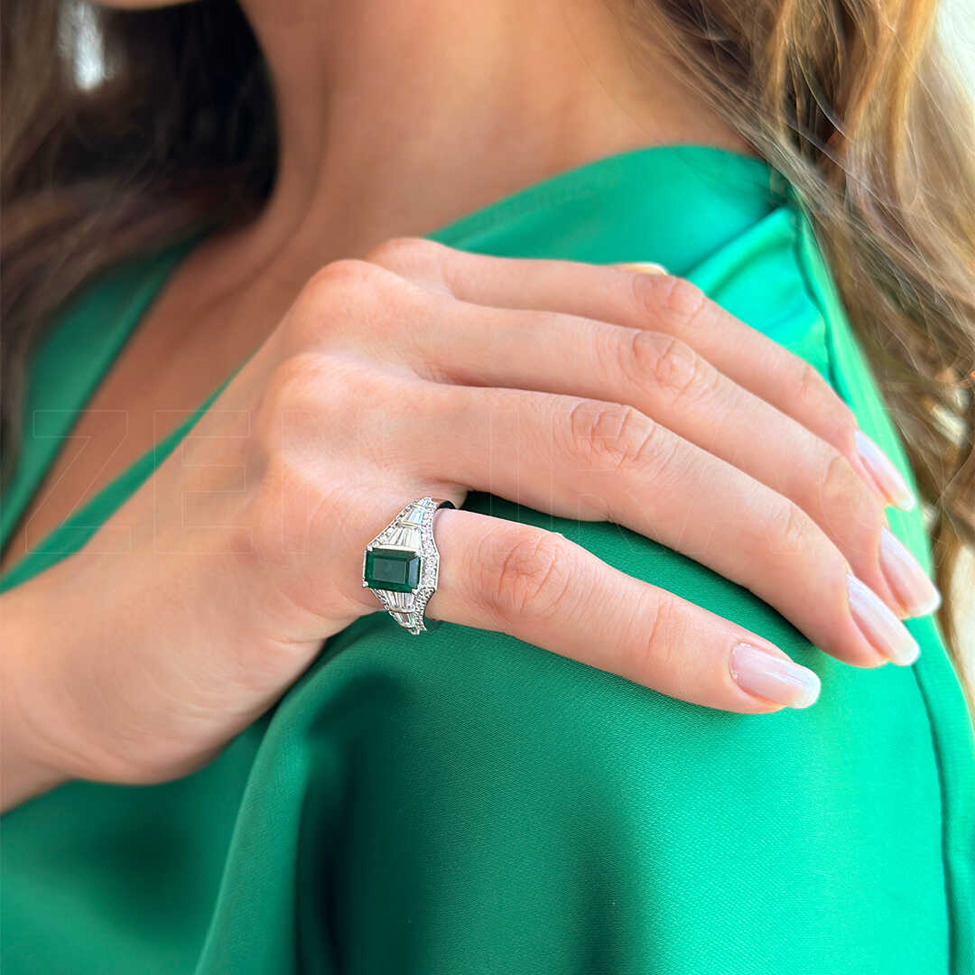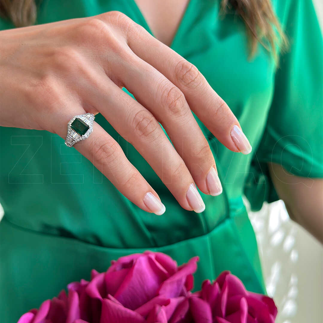 خاتم مرصع بألماس الباجيت مع حجر الزمرد 1,57 قراط