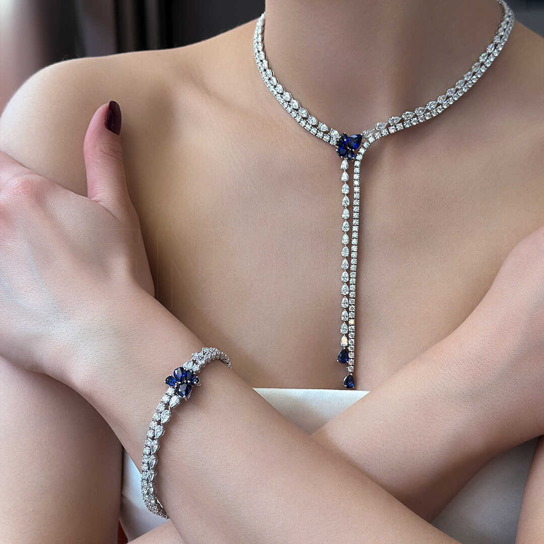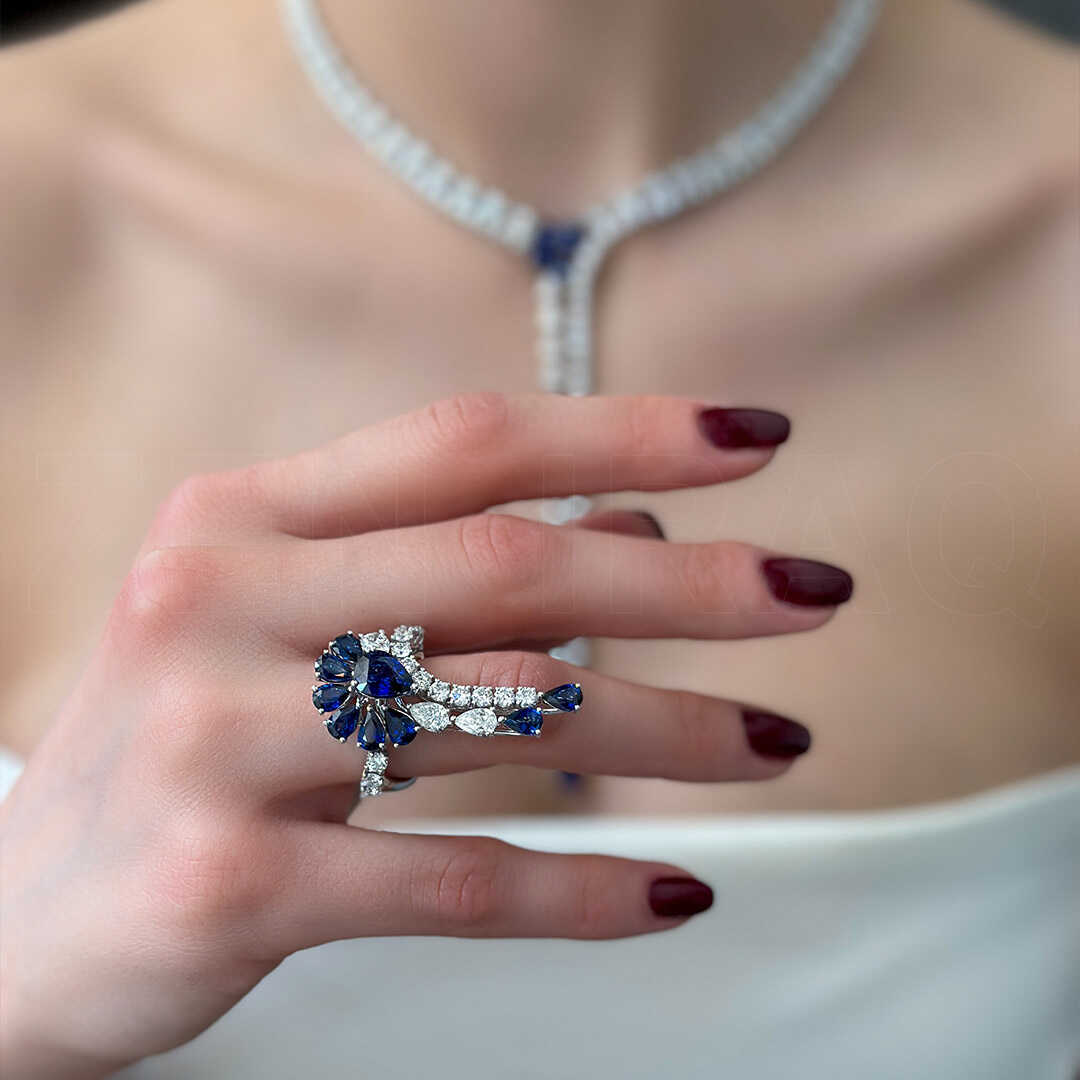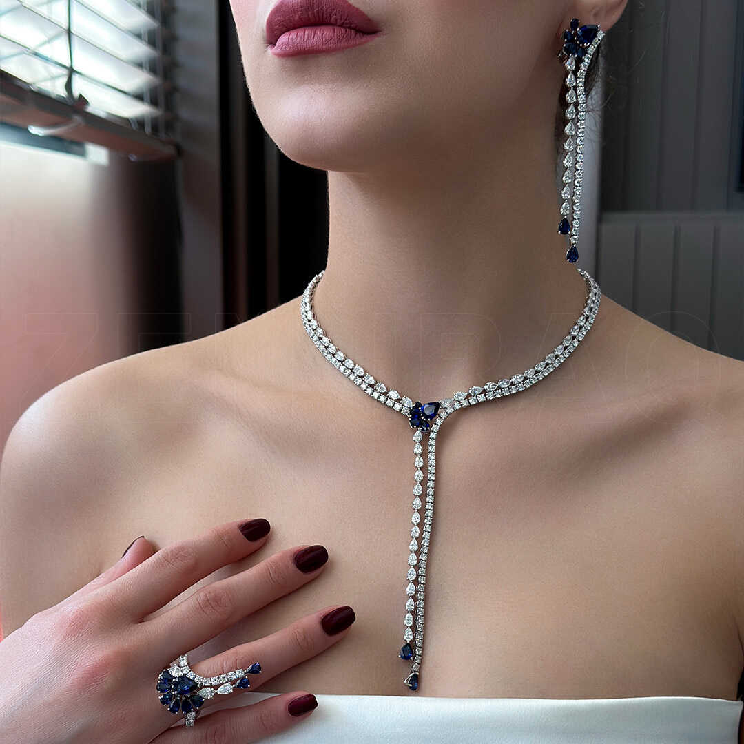طقم زفاف مرصّع بالألماس مع حجر الزفير