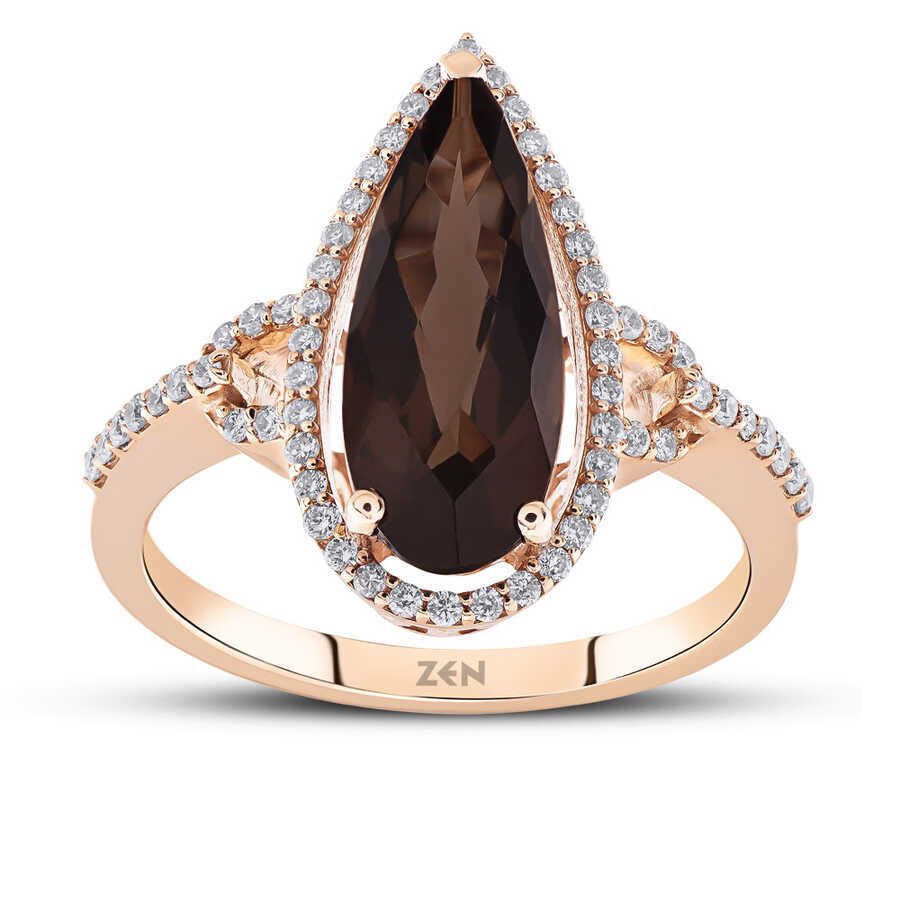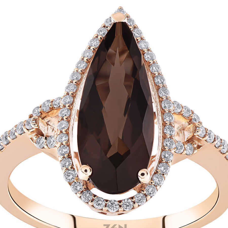 خاتم مرصّع بالألماس مع حجر السموكي كوارتز 6.41 قيراط