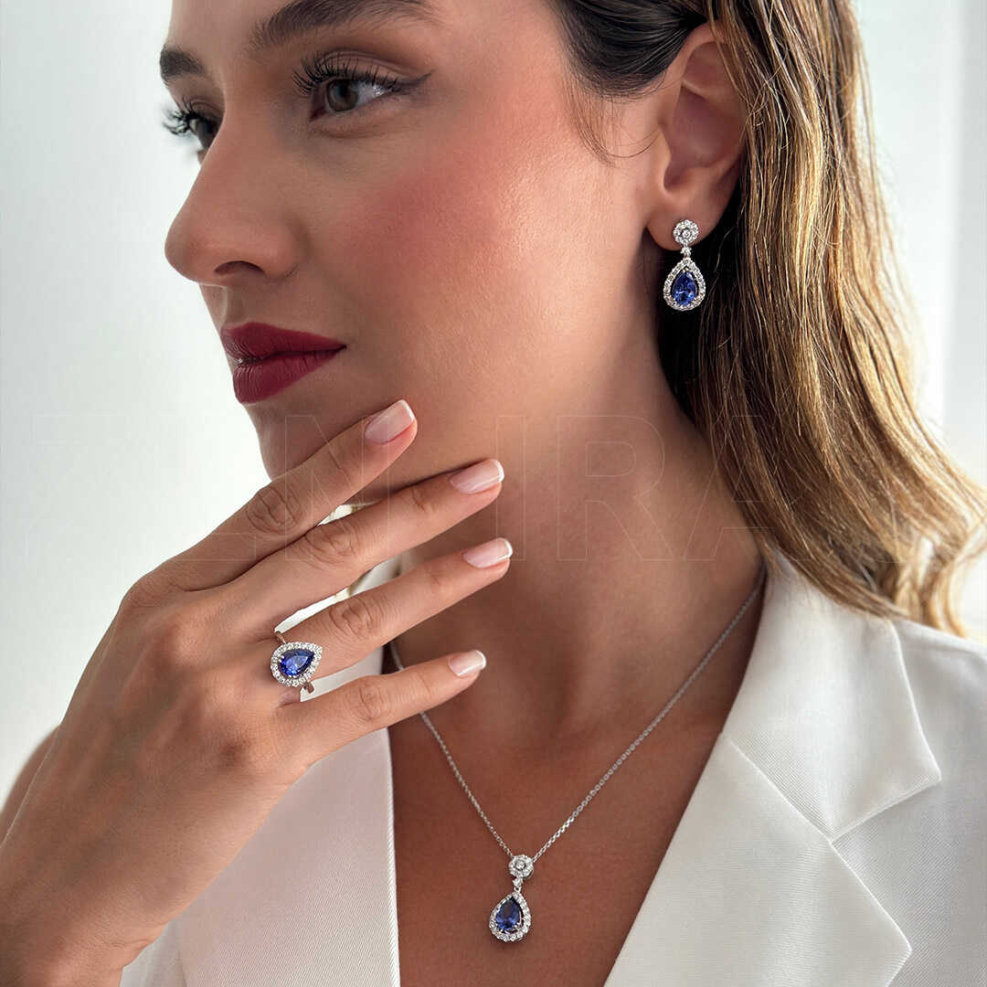 تراجي مرصع بالألماس مع حجر التنزانيت