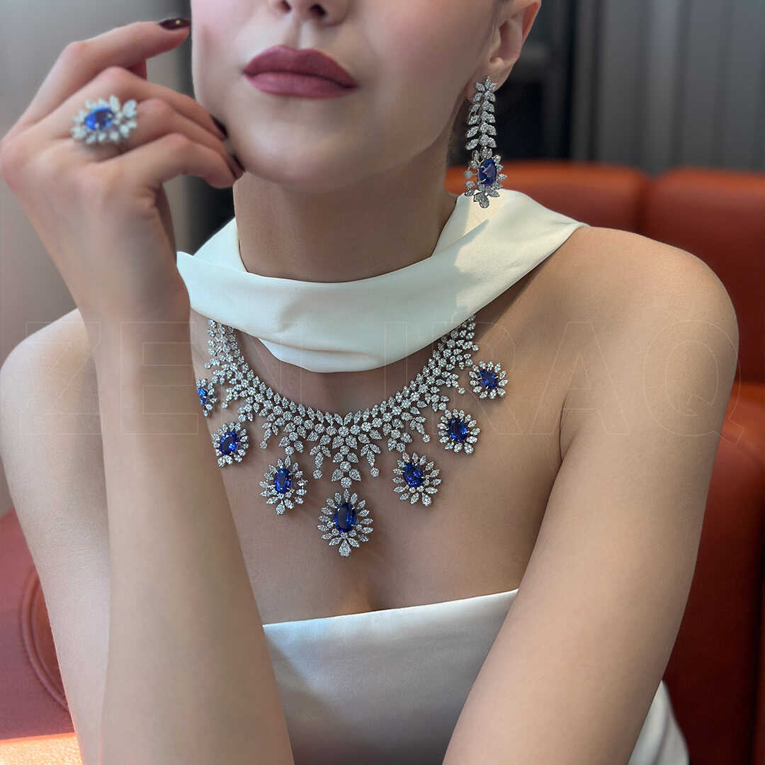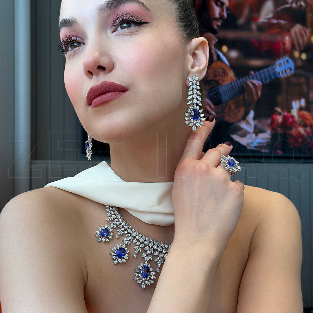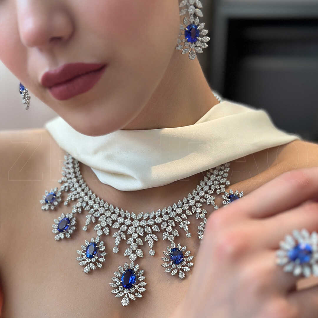 طقم زفاف مرصّع بالألماس مع حجر التنزنايت